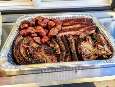 Sliced brisket, chopped brisket, and sausage