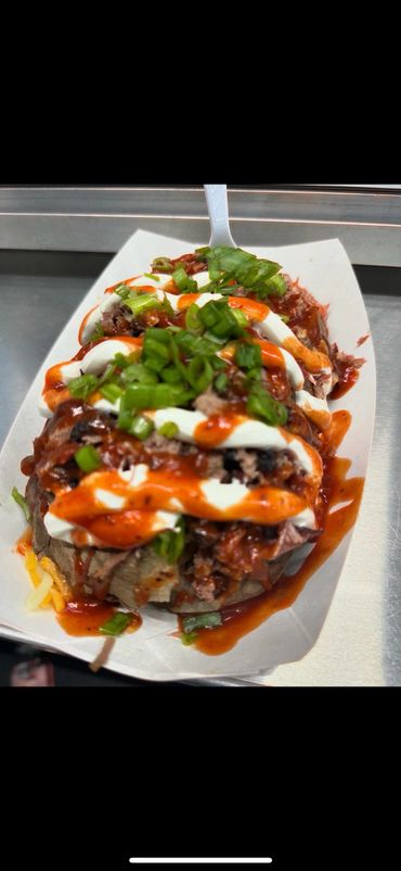 Meat choices: Smoked brisket, pulled pork, beef fajita, al pastor, barbacoa, and chicken
