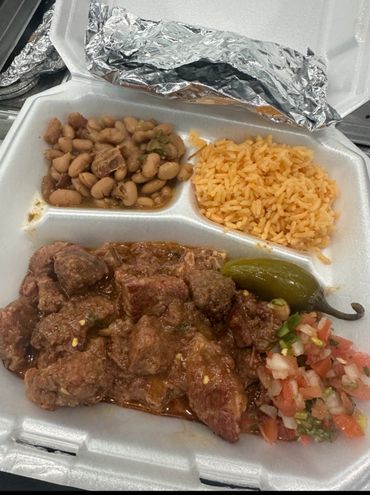 a dozen of enchiladas filled with smoked brisket and cheese smothered in our homemade enchilada red sauce.